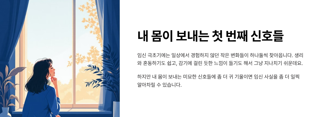 임신 극초기에는 일상에서 경험하지 않던 작은 변화들이 하나둘씩 찾아옵니다. 생리와 혼동하기도 쉽고, 감기에 걸린 듯한 느낌이 들기도 해서 그냥 지나치기 쉬운데요. 하지만 내 몸이 보내는 미묘한 신호들에 좀 더 귀 기울이면 임신 사실을 좀 더 일찍 알아차릴 수 있습니다. 이번 글에서는 임신 초기에 자주 나타나는 대표적인 증상들과, 시기별로 어떻게 변화하는지 정리해드릴게요.
