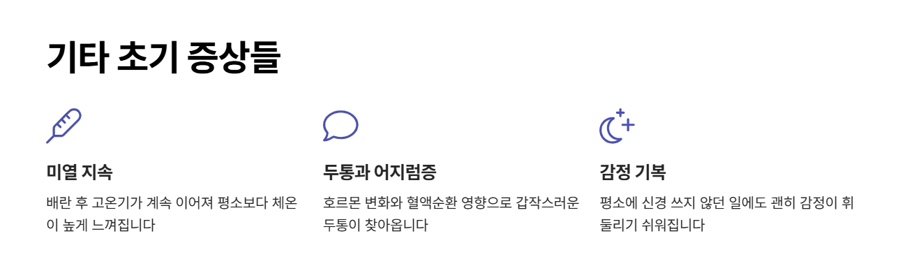 | 3주차 | 유방 변화, 두통 | 가슴 통증, 어지럼증 동반 |